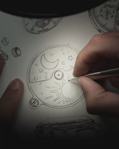 Inside the dial, the day-night indicator at 6 o'clock introduces a different reading than traditional calendars. Instead of the classic 24-hour hand, the function is reinterpreted as a mechanical construction. A dedicated disc represents the alternation between light and darkness, while the sapphire crystal crescent, secured with two screws, defines the transition. This design solution integrates the function into the structure of the dial, maintaining a clear and intuitive readability.