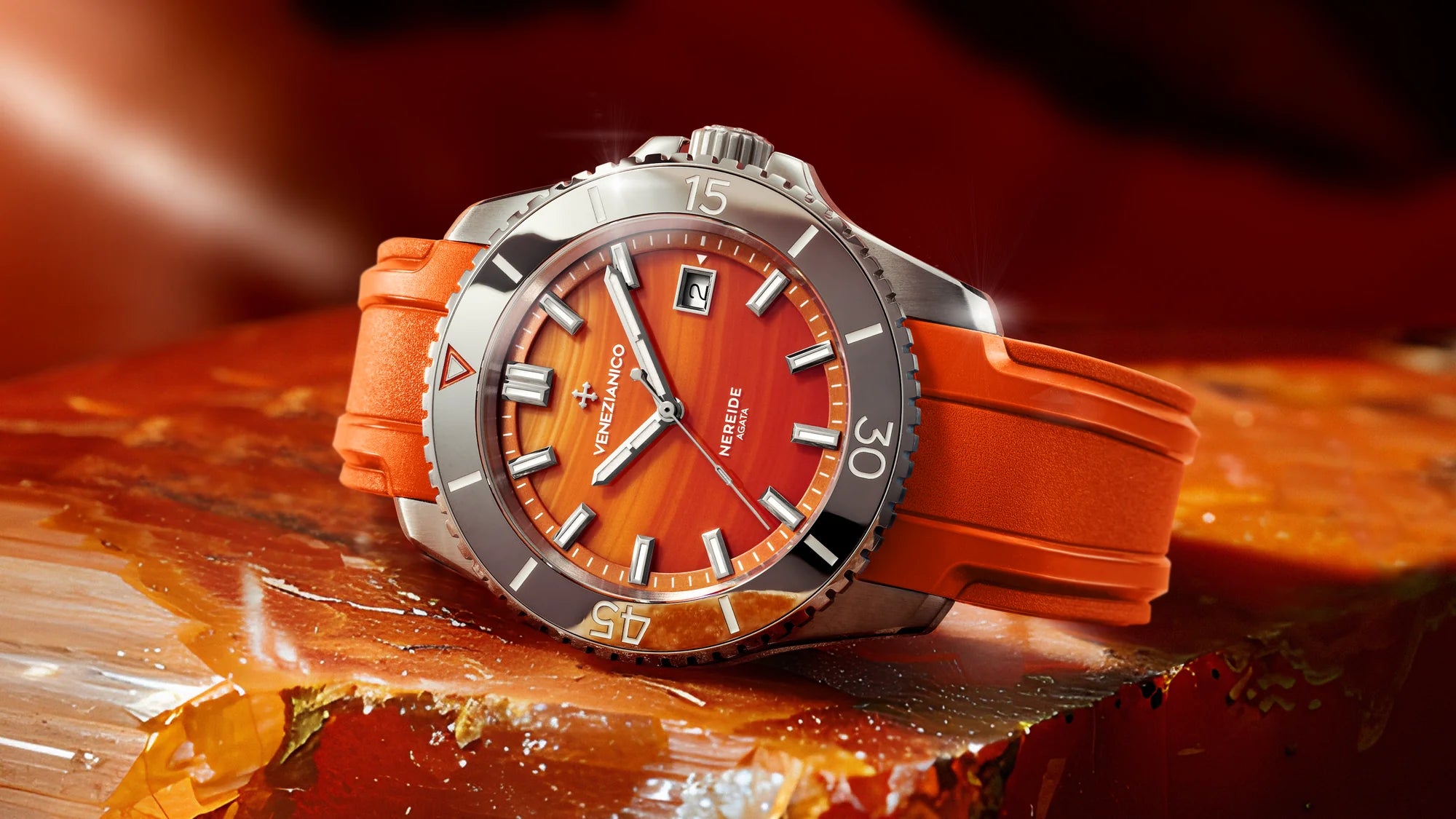 Our dive watch, water-resistant to a depth of 200 meters, takes its name from the Nereide submarine, a marvel of Venetian naval technology. This timepiece is engineered to endure strong stresses, making it particularly well-suited for water sports enthusiasts.