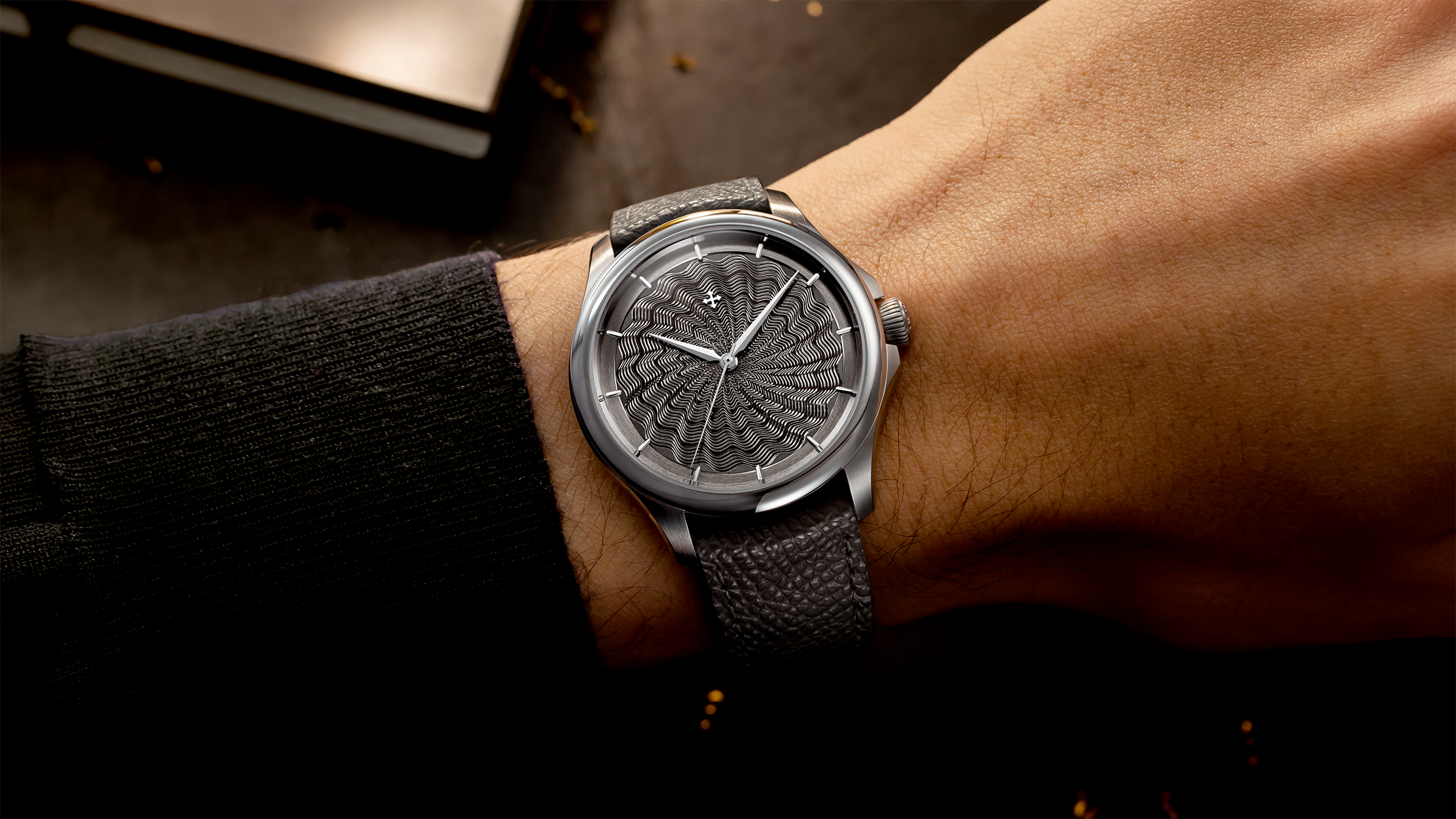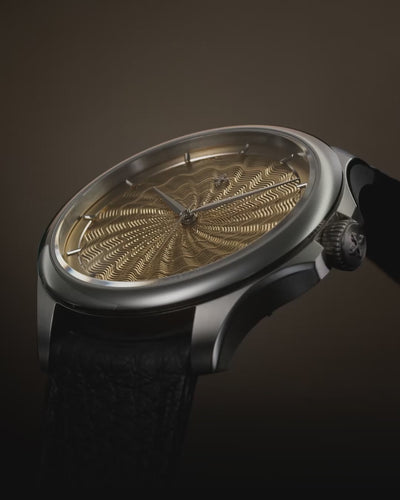 For the creation of the dials, we relied on one of the very few remaining workshops still capable of practising traditional guilloché in its most authentic form. A rare craft, preserved by a handful of masters and historic machines operated entirely by hand, where each engraving is the result of a slow, precise and irreversible gesture. Line after line, micron after micron, the metal is sculpted without any possibility of correction, in a constant dialogue between hand, material and light. The result is not a mere decoration, but a living, deep surface that changes with the angle of observation and makes every dial unique.