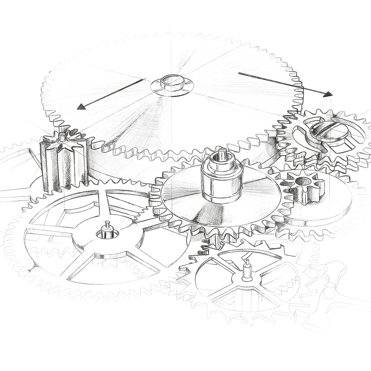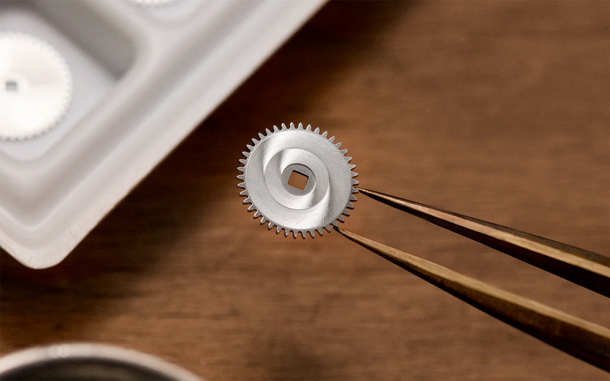 In this system, the transmission of motion is divided into two separate branches: one dedicated to the seconds, the other to hours and minutes. This mechanical separation reduces interference between the gear trains, preventing the continuous motion of the seconds hand from affecting the consistency of the main timekeeping system. The result is greater running stability and more reliable long-term accuracy. A refined approach to movement construction, designed with precision as its highest priority.