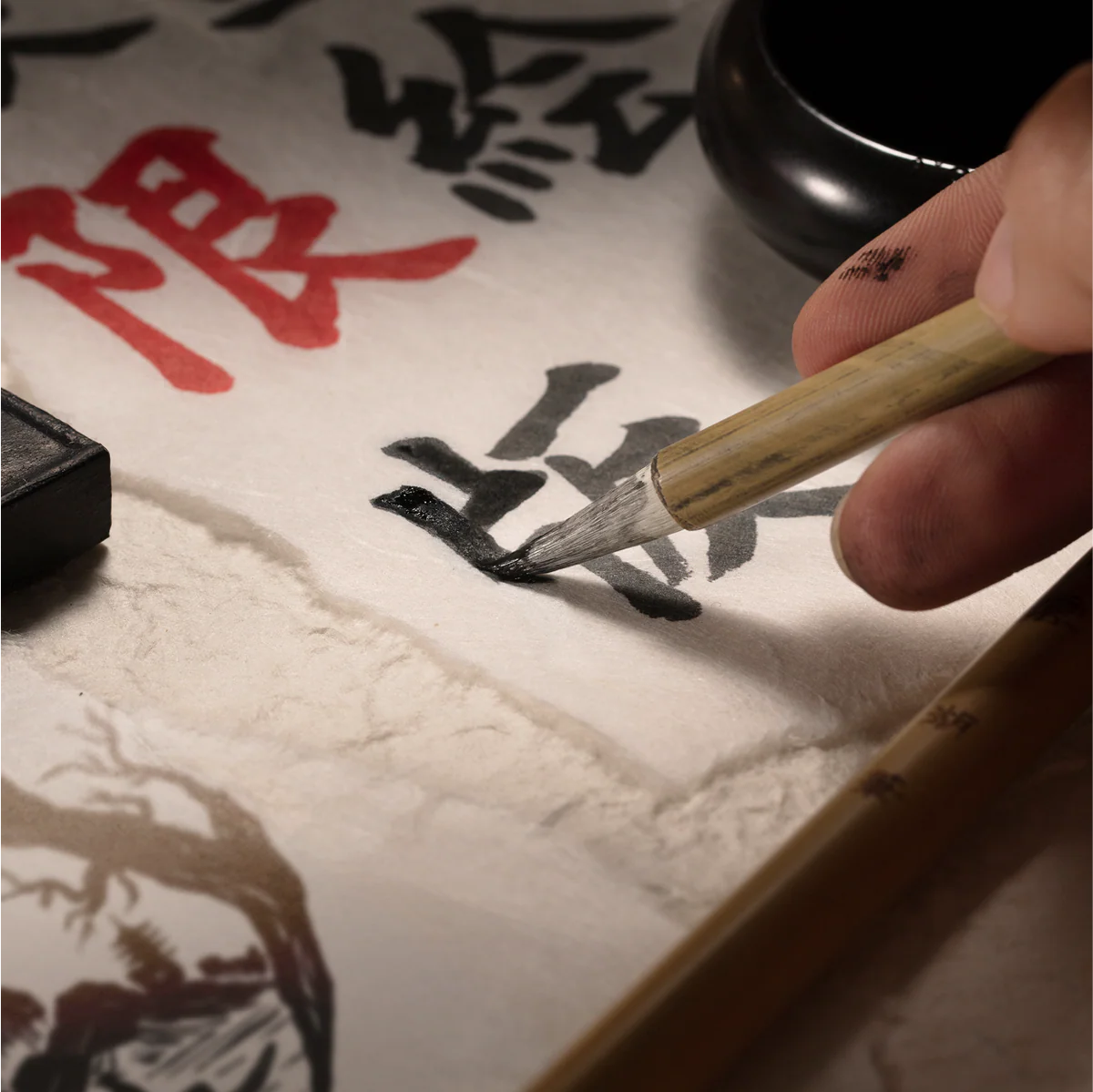 Sumi-e was introduced to Japan in the mid-14th century, spreading through Zen monasteries as both an artistic and spiritual practice. Painting thus became a form of meditation, capable of expressing the essence of the subject through just a few essential strokes. Over time, Sumi-e established itself as one of the most representative arts of Japanese culture, preserving its symbolic value and finding expression not only in painting, but also in calligraphy and decorative art.