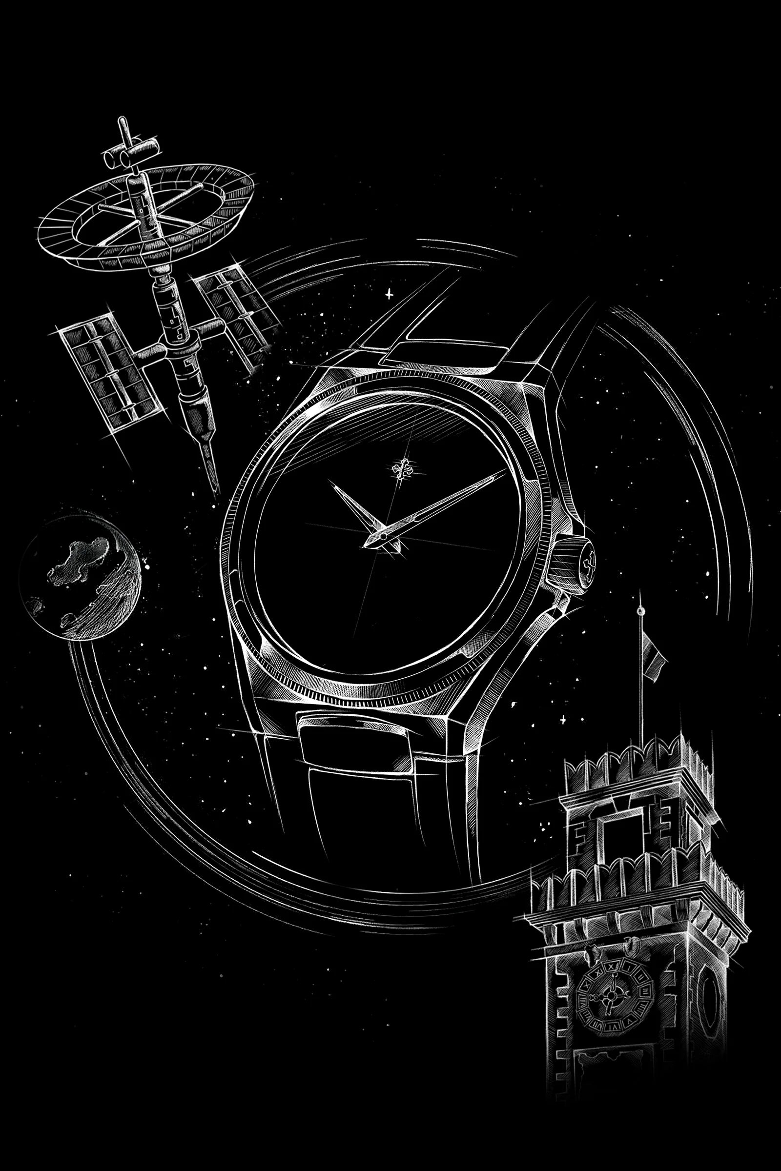 Arsenale Ultrablack is an invitation to explore the unknown, evoking the spirit of adventure and discovery that has energized Venice’s Arsenale for centuries. The caseback features an engraving of a space station immersed in the cosmic vastness, symbolizing a journey toward new horizons—just as the historic Arsenale served as the starting point for bold expeditions into uncharted territories. This link between past and future is expressed through the dial’s absolute black, which evokes infinity and the allure of the unexplored. In this way, Arsenale transforms into a modern, cosmic vision where the drive for knowledge meets ingenuity and courage, celebrating both tradition and innovation.