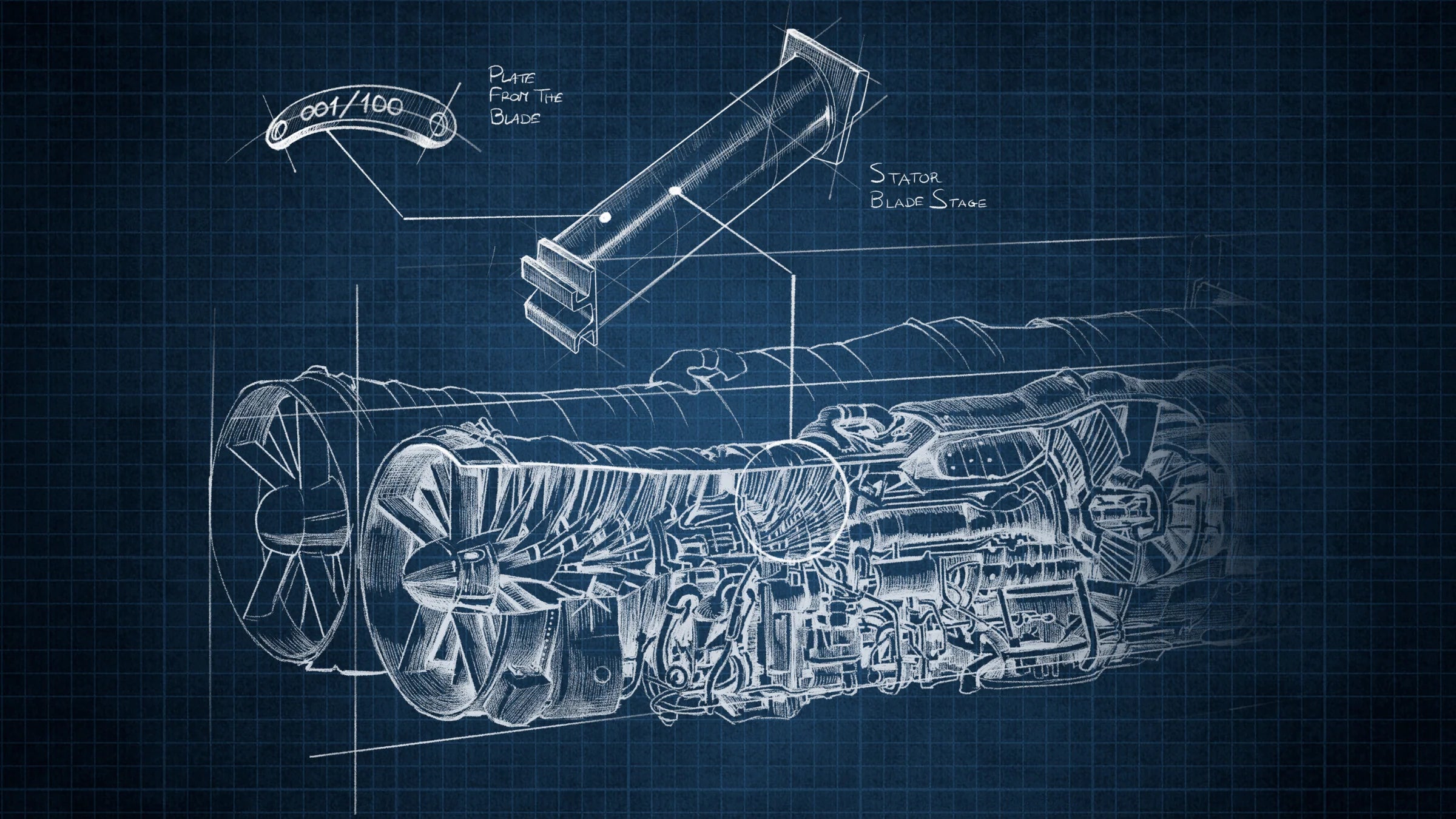 The original blades of the Rolls-Royce/Snecma Olympus 593 Concorde engine, sourced from certified lots 3464 and 3335 and made of titanium–nickel alloy, are meticulously crafted into numbered plaques. Each gold engraving contains not only the identity of the limited edition but also the memory of thousands of supersonic flight hours across the Atlantic. A process that makes every piece an unrepeatable fragment of aeronautical history, forever integrated into one of our timepieces.