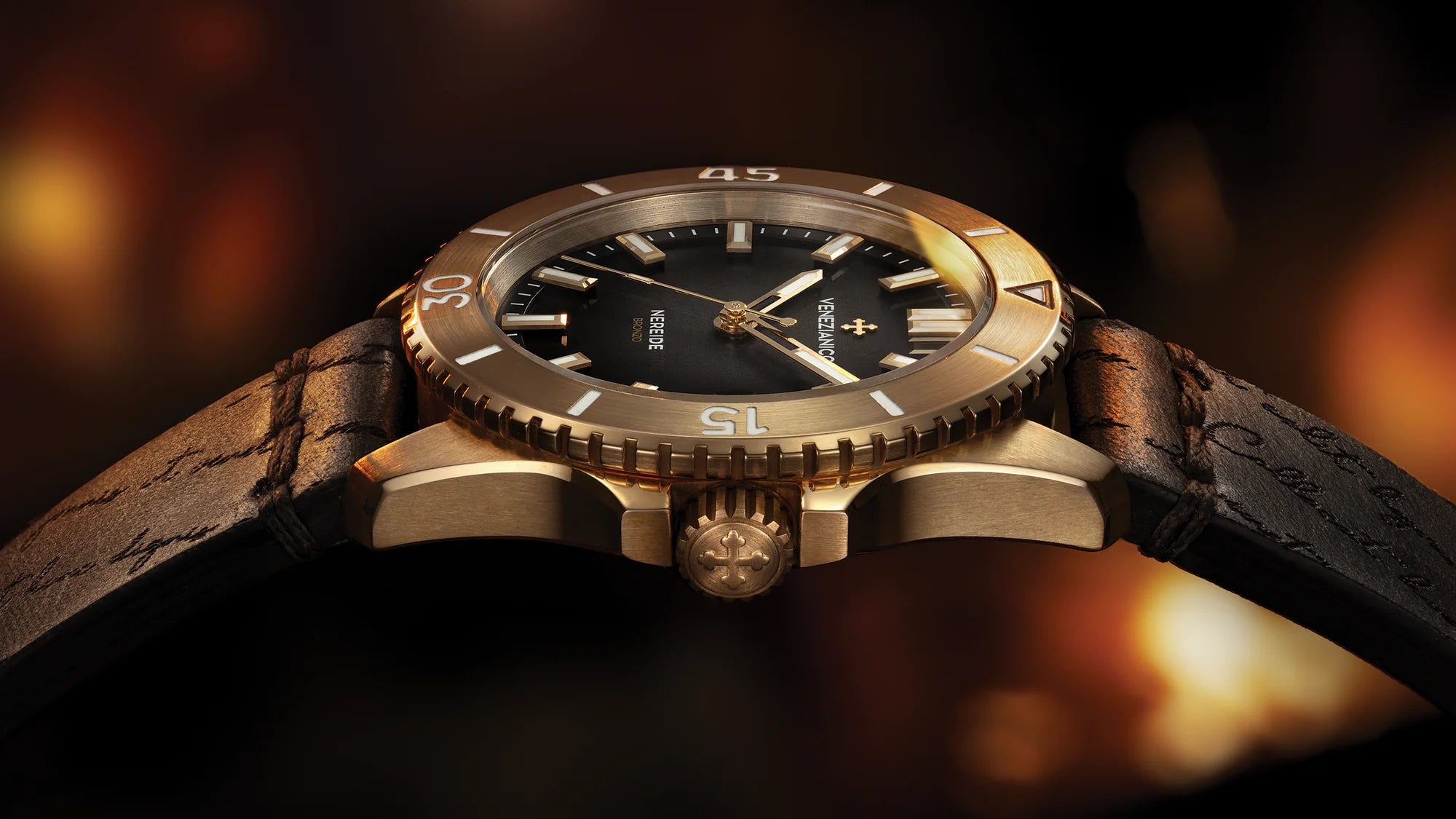 For the first time, a Nereide model features a screw-in case back adorned with an artistic depiction of the iconic four horses of St. Mark’s, the inspiration behind this design. Crafted from 316L stainless steel, the case back showcases a stunning interplay of sandblasted and radial satin finishes, creating a refined and distinctive appearance. This screw-in construction also ensures 30ATM (300m) water resistance while preventing the bronze patina from coming into contact with the skin, blending artistry with high-level performance.