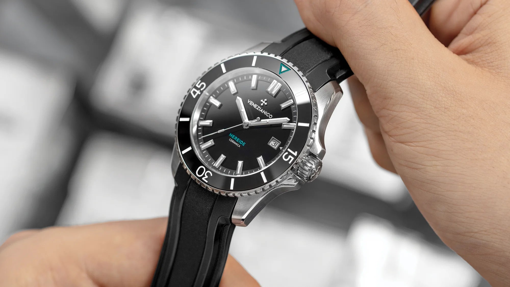 The dial of the new Nereide Ceramica takes inspiration from the ancient Venetian art of enamelwork, a refined craft dating back to the Middle Ages. This technique, historically used to adorn jewelry and artwork, involves the precise application of enamel followed by high-temperature firing. The result is a smooth, brilliant finish that enhances the dial’s durability while embodying timeless beauty, paying homage to a rich cultural heritage.