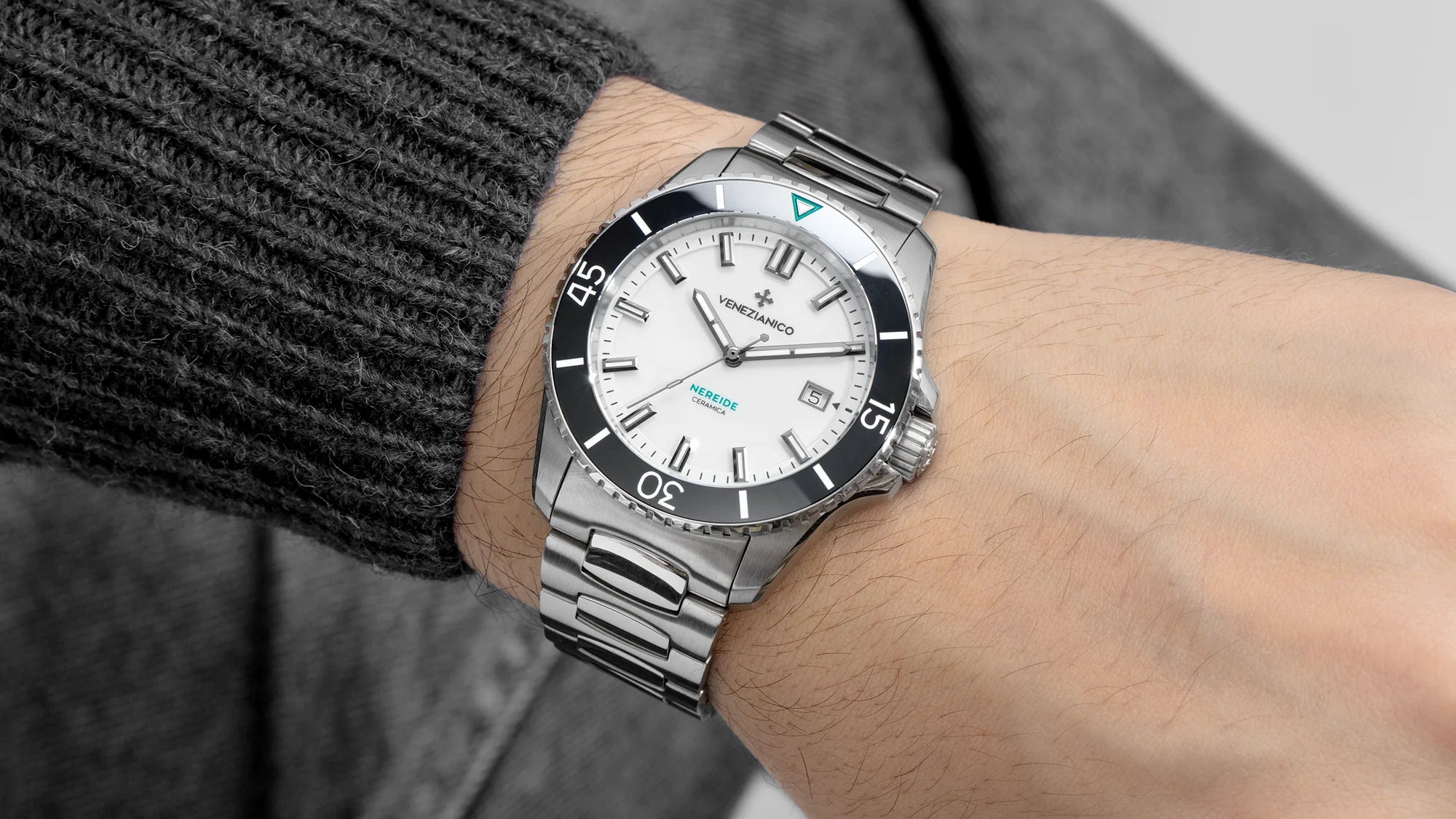 The dial of the new Nereide Ceramica takes inspiration from the ancient Venetian art of enamelwork, a refined craft dating back to the Middle Ages. This technique, historically used to adorn jewelry and artwork, involves the precise application of enamel followed by high-temperature firing. The result is a smooth, brilliant finish that enhances the dial’s durability while embodying timeless beauty, paying homage to a rich cultural heritage.