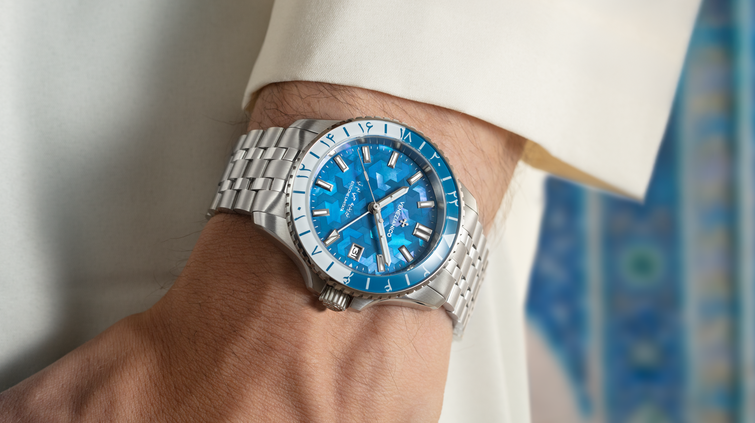 This Limited Edition of 300 numbered pieces celebrates the cultural exchanges between Venice and Central Asia, highlighting the region’s rich artistic heritage. Samarkand, an ancient crossroads along the Silk Road and the heart of the Timurid civilization, is the model’s main source of inspiration. The dial, handcrafted as a mother-of-pearl mosaic, echoes Persian ornamental motifs and features numerals in Farsi script. Each timepiece is a tribute to the architectural elegance and cultural prestige of one of the most flourishing eras in Central Asian history.