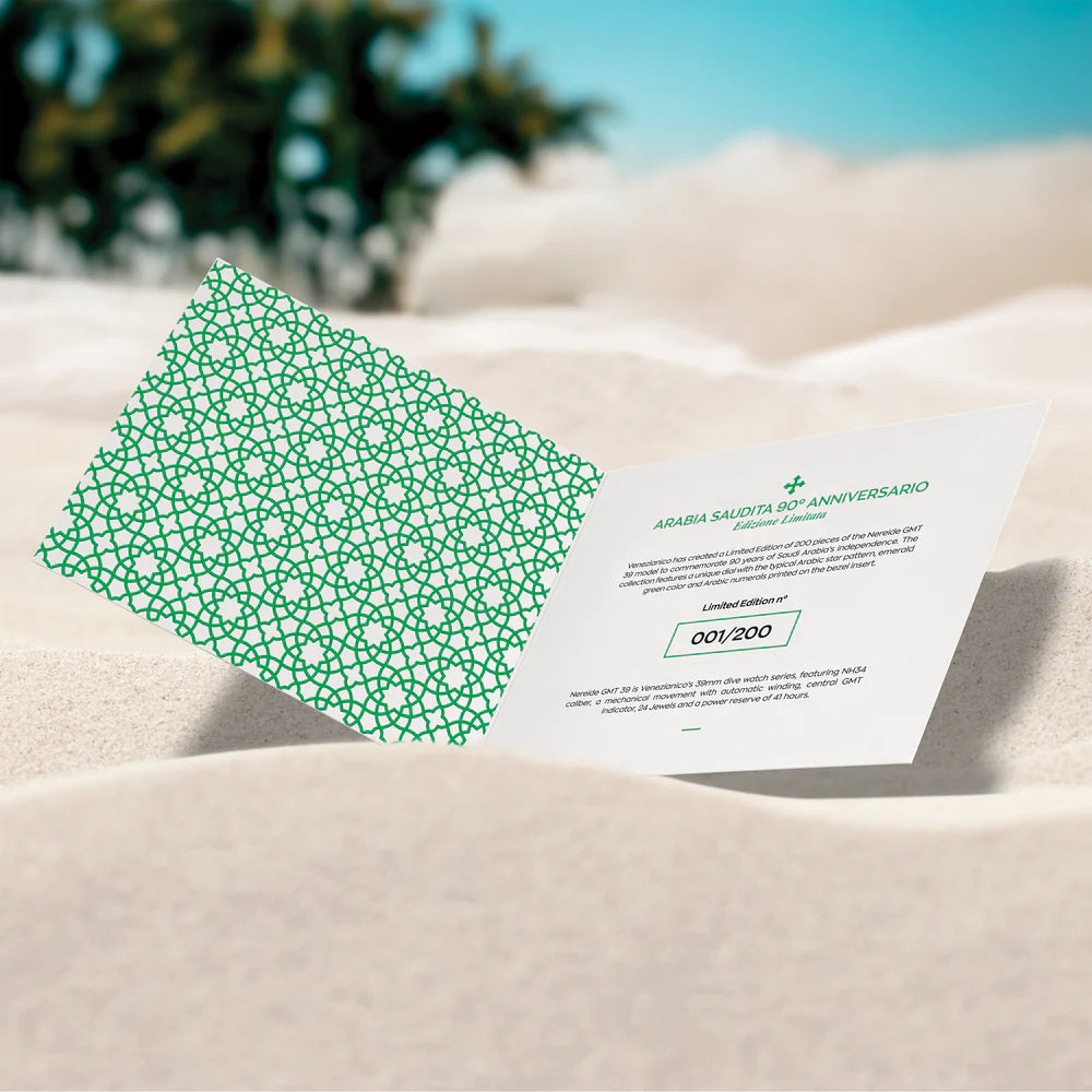 We have chosen to produce 200 pieces to celebrate the 90th Anniversary of the Independence of Saudi Arabia. Every watch is identified by a progressive serial number engraved on the caseback and printed on the Certificate of Authenticity.