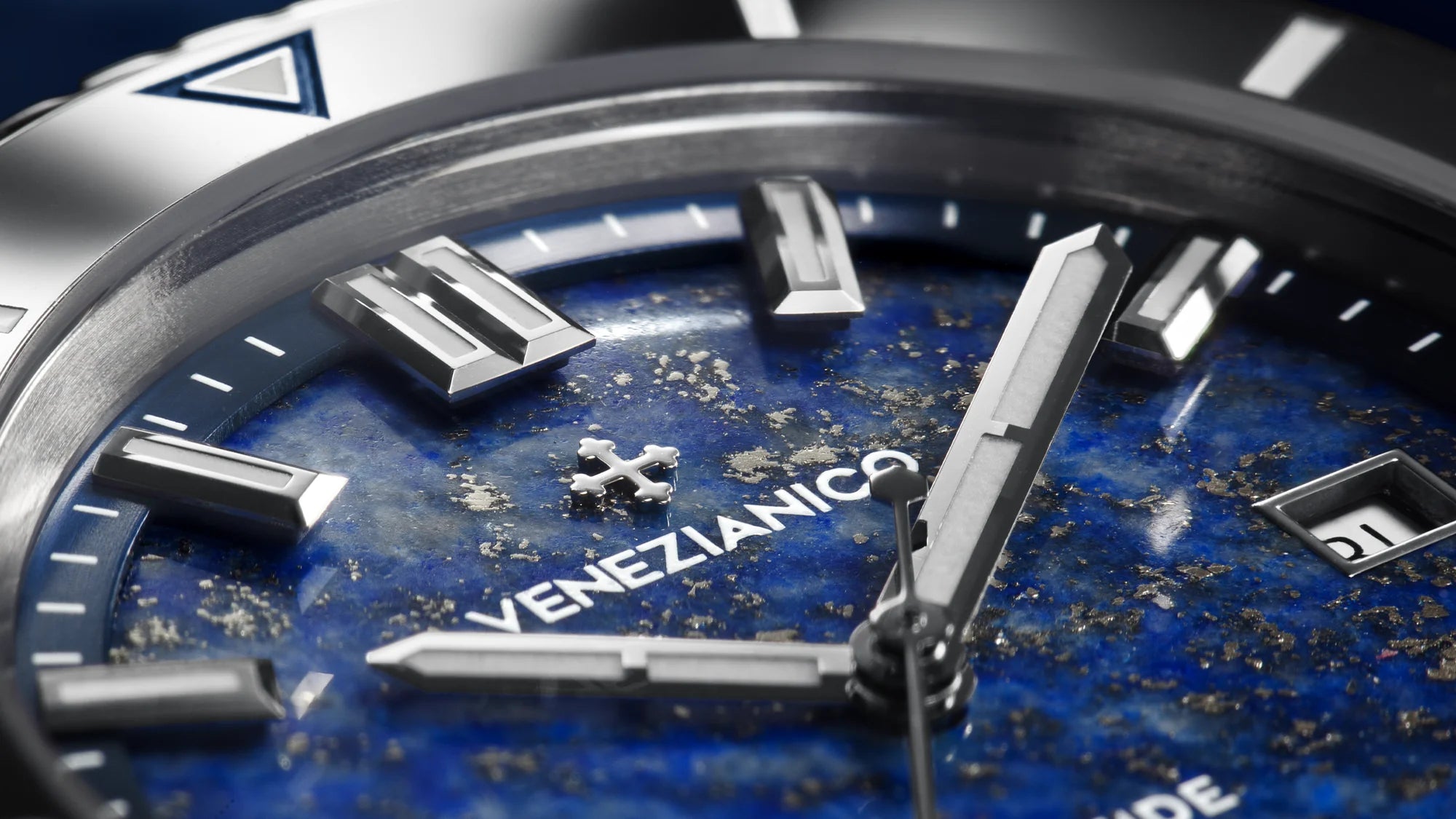 Wearing a watch with a lapis lazuli dial is an experience that deeply connects us to the tones of medieval art and Venetian history. Each time you raise your wrist to check the time, you are immersed in the richness of a centuries-old cultural heritage, telling stories of exotic trades and craftsmanship. The deep and vibrant hues of lapis lazuli, with its silver veins, evoke a captivating journey through Venetian history, highlighting the city's ability to enhance the unique beauty of this extraordinary stone.